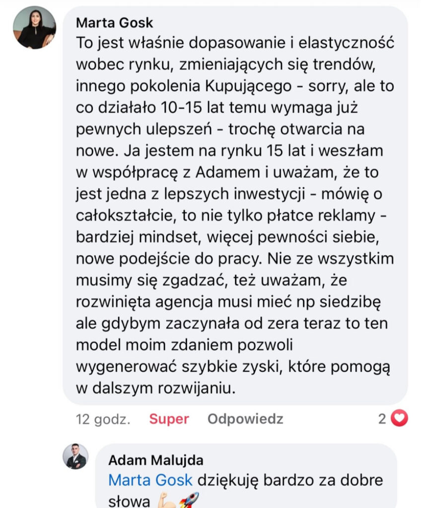 Dołącz do elitarnego grona agentów, którzy przestali dzwonić na zimno i zaczęli pozyskiwać klientów poprzez marketing. Program stworzony przez największą agencję marketingową dla biur nieruchomości w Polsce.