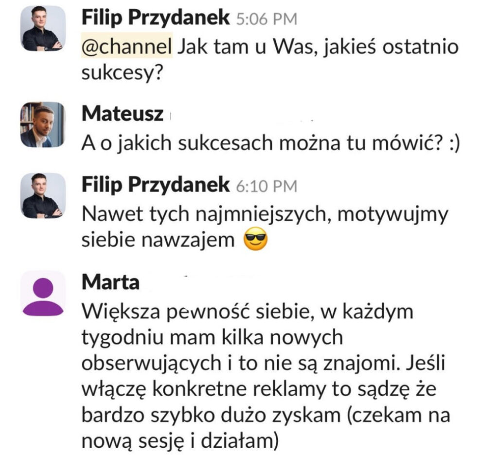 Otrzymujesz dostęp do gotowych strategii marketingowych, szablonów reklam, materiałów sprzedażowych oraz cyklicznych konsultacji grupowych, na których na bieżąco pomagamy Ci z twoimi probelamami. Wszystko, czego potrzebujesz, by zacząć działać od zaraz.