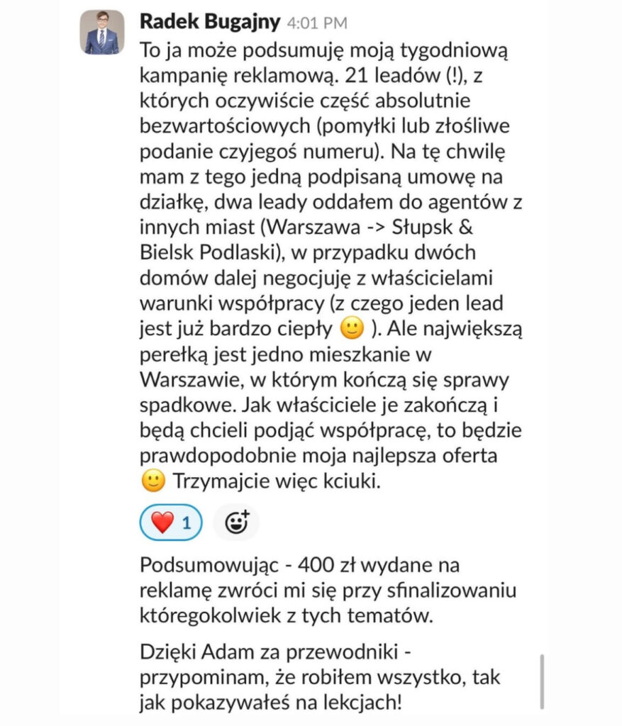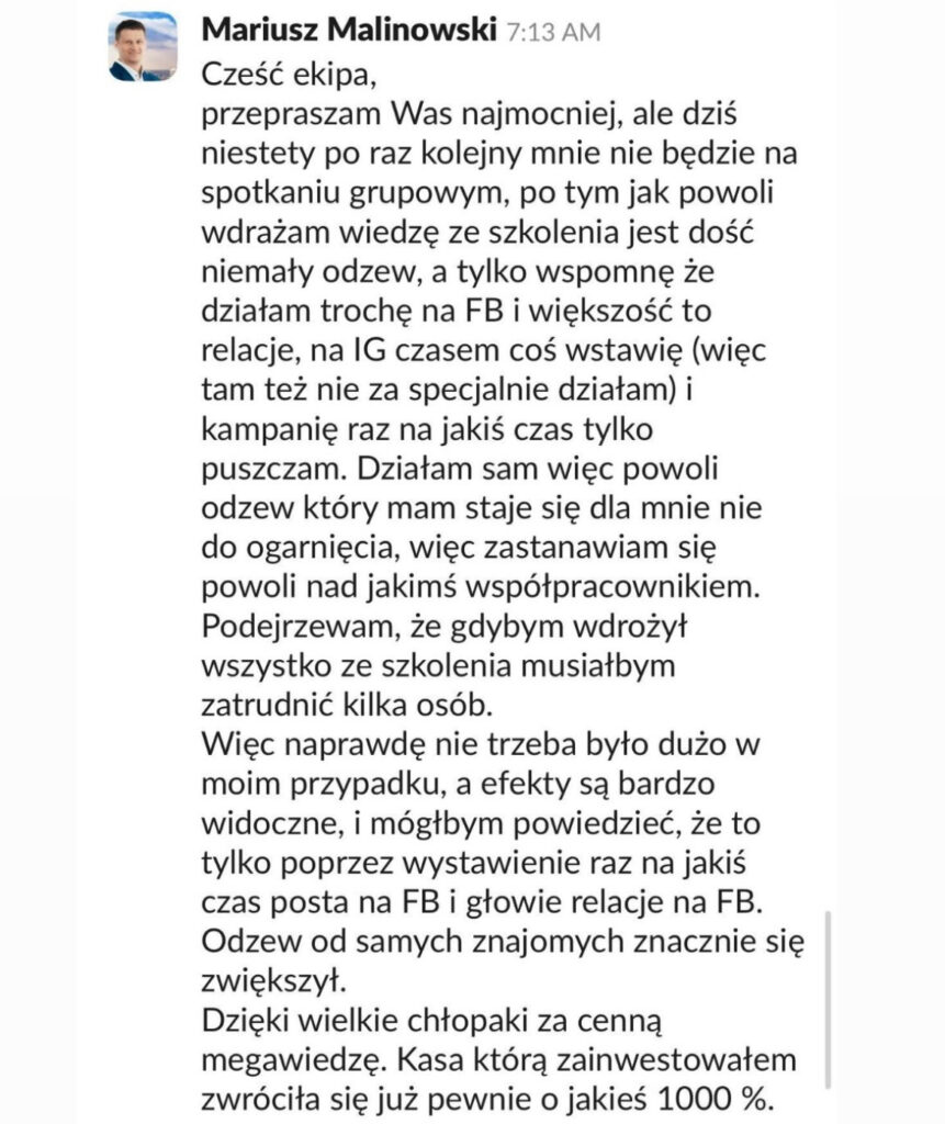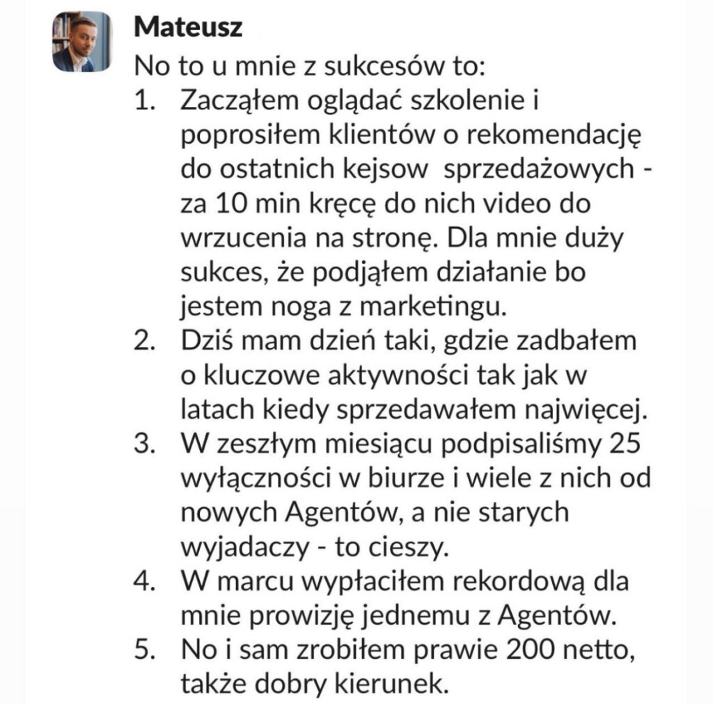 W przeciwieństwie do innych szkoleń, uczymy tylko sprawdzonych strategii, które przyniosły realne rezultaty naszym klientom. Od 4 lat pomagamy agentom nieruchomości budować silne marki osobiste, pozyskiwać umowy na wyłączność oraz sprzedawać nieruchomości poprzez marketing.